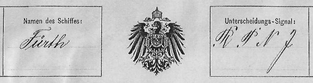 Unterscheidungssignal der Fürth, Ausschnitt aus dem Schiffsmessbrief, © Staatsarchiv Hamburg, Schiffsregisterakte Schraubendampfer Fürth, Registernr. 3656, Ref. 231-4_3005