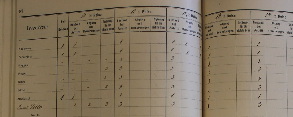 Die beiden Kartoffelschälmesser wurden nach jeder Reise als neu anzuschaffen gelistet, von ihnen ist also reichlich Gebrauch gemacht worden.