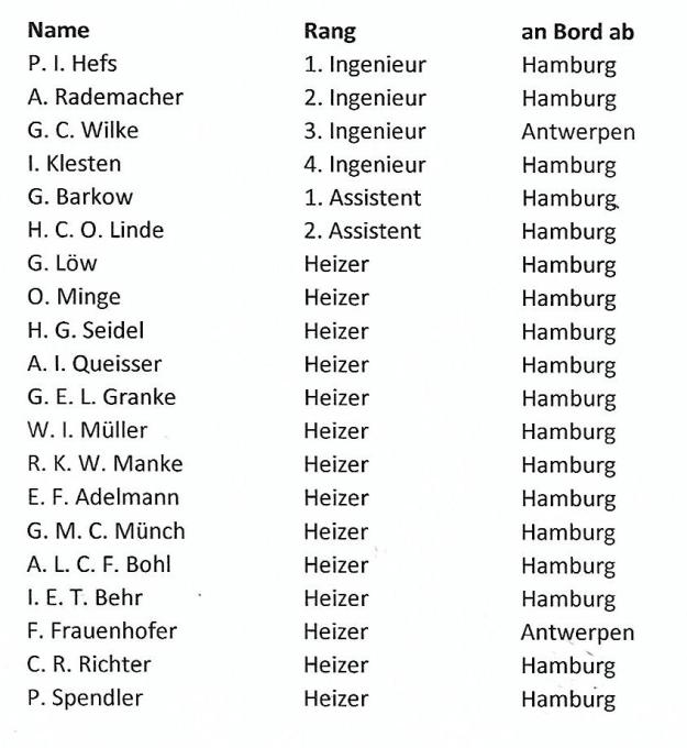 Der Kapitän, der 1. Offizier und der 1. Maschinist wurden von der Mannschaft übrigens oft spöttisch die „drei Eisheiligen“ genannt. Warum das so war, kann mir vielleicht ein Leser erklären, der zur See gefahren ist. Danke im Voraus für die Aufklärung!